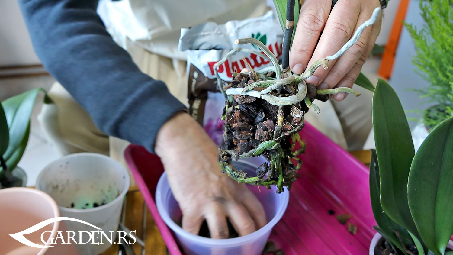 - Dodajte supstrat: Lagano rasporedite supstrat oko korena, ne sabijajući ga previše, struktura mora da ostane rastresita i prozračna.